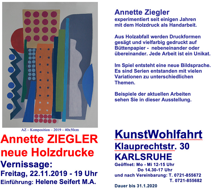 Aus Holzabfall werden Druckformen gesägt und vielfarbig gedruckt auf Büttenpapier. Neben- oder übereinander. Jede Arbeit ist ein Unikat. Es geht darum, aus verschiedenen Elementen unerwartete Welten zu schaffen und immer neue Kombinationen zu finden. Konkrete und abstrakte Formen sollen sich mischen. Im Spiel wird eine neue Bildsprache gesucht für die ständige Erneuerung des Geschehens. Sie sehen aktuelle Arbeiten 2019/2020/2021 zum Thema KÖPFE und FIGUREN: 30 Beispiele und Variationen aus 5 Serien. Die Arbeiten können bis Ende Oktober gesehen werden: MO–SA / 9-20 Uhr.