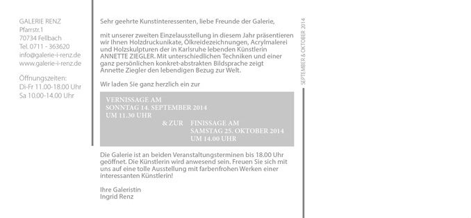 Vernissage am 14. September 2014 / 11.30 Uhr Finissage am 25.Oktober 2014 / 14.00 Uhr