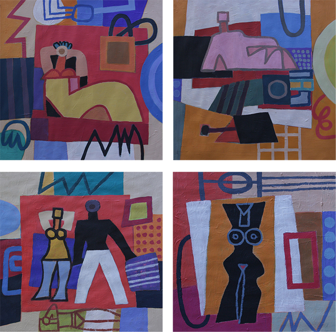 davon hier 2 Bilder mit dem Titel: "alle wollen an den Strand" - je 80x80 cm - 2016 -
