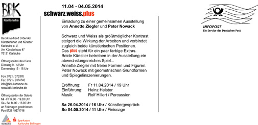 BBK Künstlerhaus Karlsruhe - zusammen mit Peter Nowack 11.04. bis 04.05.2014,