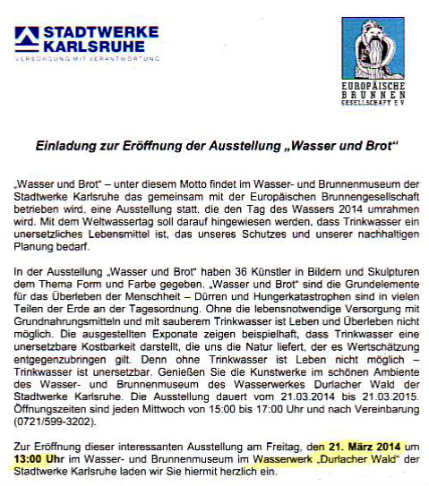 Stadtwerke Karlsruhe, 21. März 2014 - 21. März 2015 Mittwoch von 15.00 - 17.00 Uhr und nach Vereinbarung