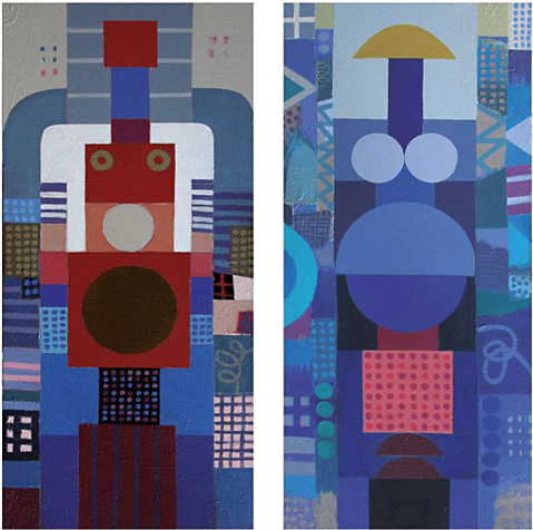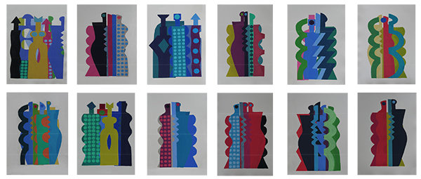 Große hohe, große breite Arbeiten – quadratische Collagen, Computerzeichnungen und kleine Bilder bieten ein reiches Spektrum zum ewig interessanten Thema FIGUR.